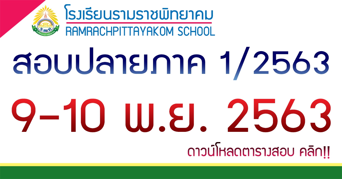 หลังจากได้จัดการเรียนการสอนมา 1 ภาคการศึกษาแล้ว โรงเรียนรามราชพิทยาคมได้จัดการวัดผลและประเมินผลสอบปลายภาคเรียนที่ 1/2563 ในวันที่ 9-10 พฤศจิกายน 2563